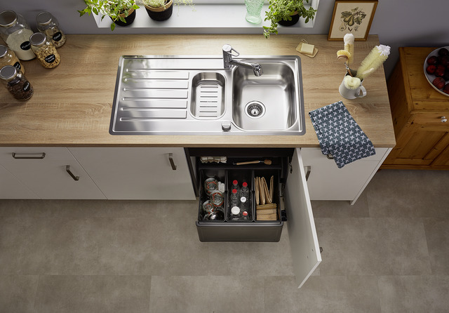Egouttoir: Oui | version: vidage automatique, avec acc. en inox | Position du bol: réversible | Options d'installation: 3 | Taille sous meuble min.: 600 mm