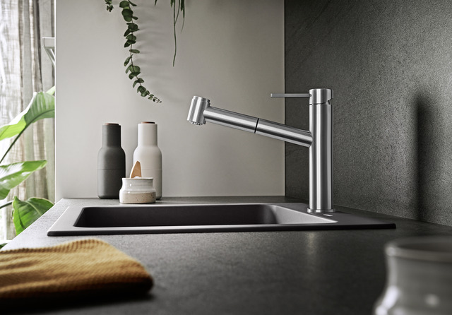 - Avec douchette extractible et bouton permettant de basculer facilement d'un type de jet à l'autre